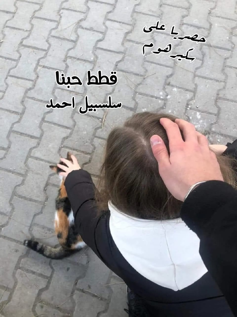 قطه منهم لفت ورجعت تجري لعندها فا مسك هو القط التاني وكان ماشي قدامه وهوا مغمض عشانها
